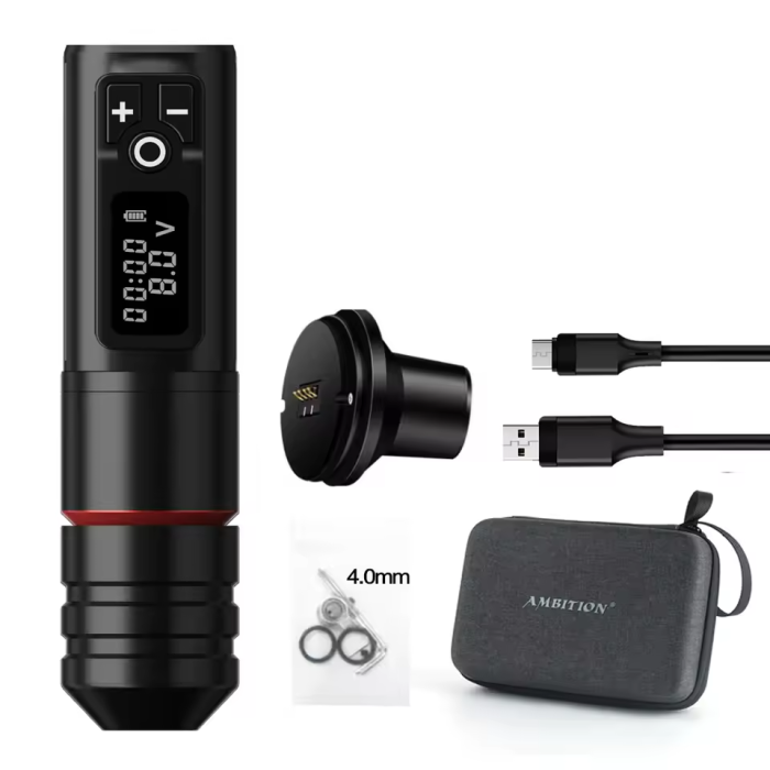 ДВИГУН: Ambition безсердечний двигун постійного струму NINJA pro ідеально підходить для тонких ліній,гладкого чорного та сірого,реалістичного затінення.та багато іншого.Це ваша машина все-в-одному.Якщо ви виключно чорно-сірий реалістичний художник.він має м’якший двигун, який точно поєднується з 3,5-тактний верстат розміром 33*128 мм, вагою близько 180 грамів